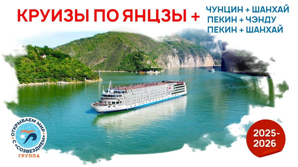 Вместе с нашим генеральным партнером – круизной компанией «Созвездие» – приглашаем вас в незабываемые путешествия по реке Янцзы на современных теплоходах уровня 5*, дополненные насыщенной до и после круизной программой в Пекине, Шанхае, Чунцине или Чэнду.