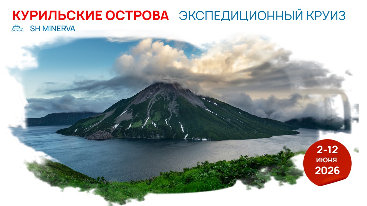 Большую часть времени экспедиционное судно SH Minerva выполняет круизы в Антарктиду, Японию и Индонезию, и только со 2 по 12 июня 2026 у вас будет уникальная возможность отправиться на этом судне в круиз по Курильским островам!